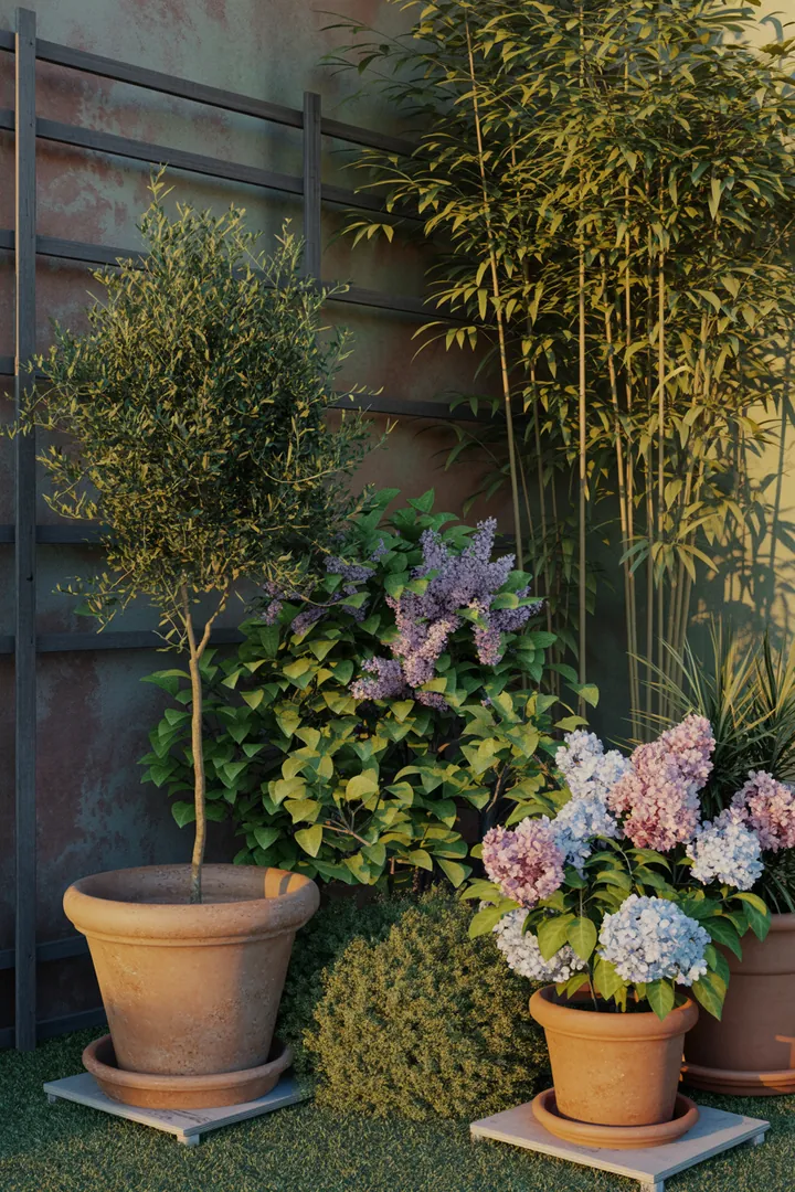 - Bündeln Sie mehrere Kübel zu einer Gruppe, das stabilisiert und wirkt wie ein „grünes Modul“.